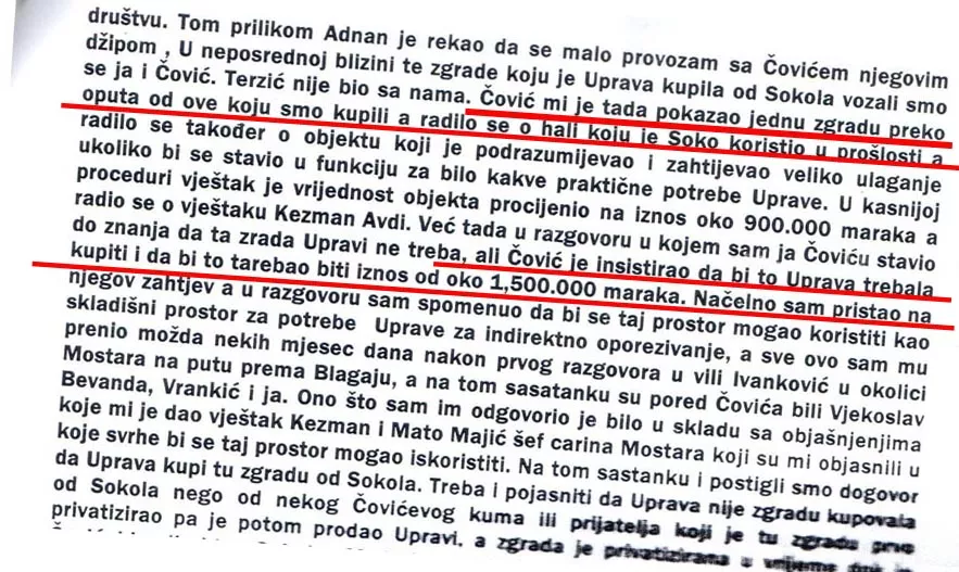 Prethodno, zgradu su od Sokola privatizirali Čovićevi prijatelji, i to dok je Čović bio direktor ovog bivšeg mostarskog giganta, po veoma povoljnim cijenama, a onda je Upravi prodali za dva miliona KM, što je duplo više od procijenjene vrijednosti. Znajući da bi vrlo brzo u Tužilaštvu BiH mogla biti pokrenuta istraga u ovom slučaju, Čović je prije 10-ak dana počeo u javnosti pričati žalopojke kako mu se eto montira u slučaju "Čaušević".