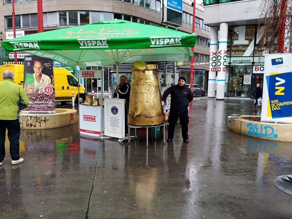 Druženje Bosanaca i Hercegovaca danas je upriličeno na trgu u Beču uz bosansku kafu, Vispakovu Zlatnu džezvu, piše bh. novinska agencija Patria.