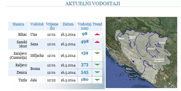 Rijeka Bosna u Reljevu danas bila je 373 cm, u Zenici 545 cm. Bosna, koja je tokom posljednja tri dana izazvala i najviše poplava, jučer je u Reljevu, osam minuta prije 16 sati iznosila 4 metra i 57 cm. Bosna je u Zenici u isto vrijeme iznosila 5 metara i 90 cm.