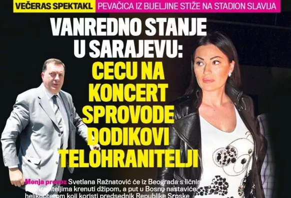 Također, u Kuriru navode kako je koncert „visokog rizika“ te će Ceca biti pod zaštitom tjelohranitelja Milorada Dodika predsjednika RS-a, a u Istočno Sarajevo će sletjeti njegovim helikopterom.