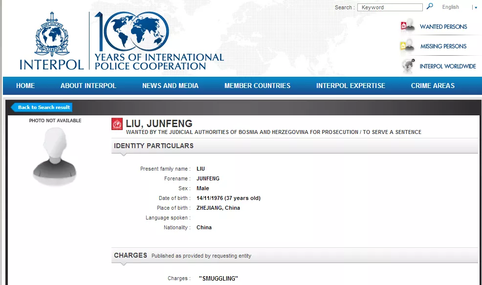 Na interpolovim potjernicama BiH traga za Liu Junfengom (37), Jin Weizhongom (43), Xin Weitaom (30) te Liu Chunqingom (48). Na potjernicama nema ni fotografija osumnjičenih kriminalaca, većina ih je objavljena prije dvije ili tri godine.
