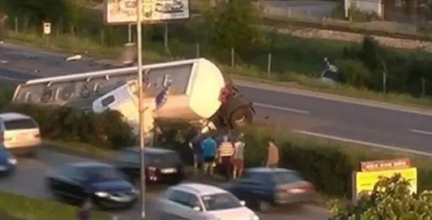 Na cisterni koja je prevozila gorivo pukla je guma, nakon čega je vozač izgubio kontrolu nad vozilom. Udario je u putnički automobil čiji je vozač poginuo na licu mjesta.