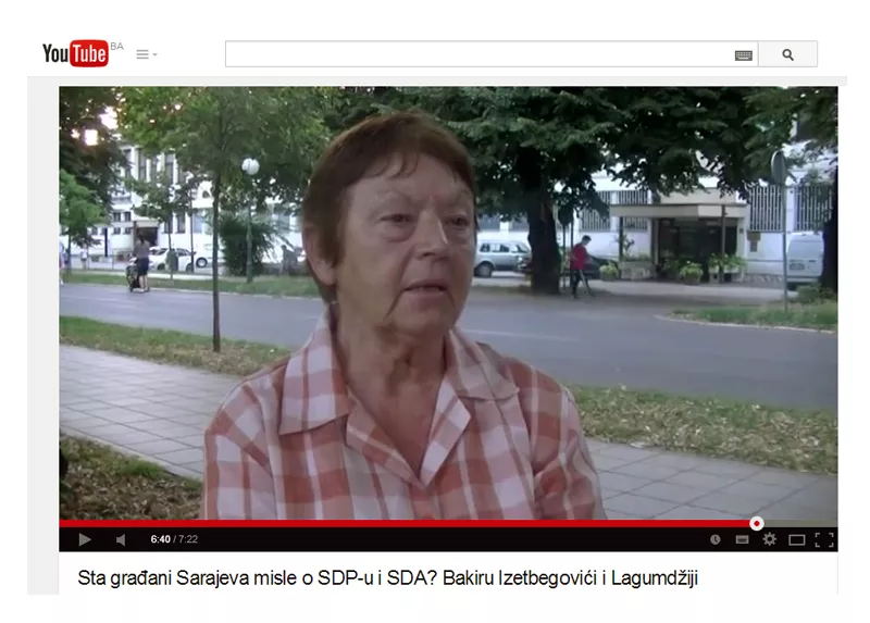 Na internet kanalu You Tube pojavila se prije dva dana anketa u kojoj građani Sarajeva odgovaraju na pitanje da li su zadovoljni sa politikom koju vode predsjednik Socijaldemokratske partije (SDP) Zlatko Lagumdžija i predsjedavajući Predsjedništva BiH Bakir Izetbegović, prenosi bh. novinska agencija Patria (NAP).