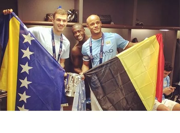 Odmah nakon odigrane utakmice Džeko je na Instagramu objavio fotografije iz svlačionice. Na jednoj pozira sa svojim saigračem Vincentom Kompanyjem inače belgijskim reprezentativcem. I Džeko i Company u rukama drže zastave svojih država. S obzirom da su Belgija i BiH u istoj grupi za odlazak na EURO 2016. godine u Francuskoj, slika ima i simbolično značenje. Ranijih dana, putem Instagrama Džeko i Kompany vodili su "žustru" raspravu o tome ko ima bolje navijače.