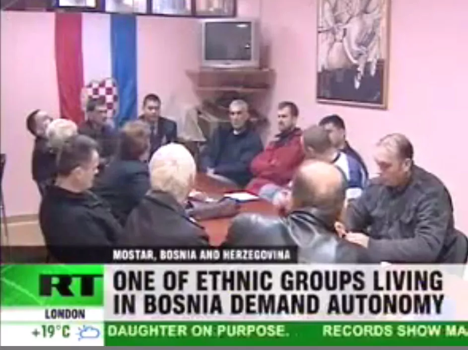 Televizijska mreža pod kontrolom zvanične Moskve, i to na engleskom jeziku u svom prilogu navodi izjave Petra Milića, člana Hrvatske stranke prava i Lea Pločkinića, vođe organizacije „Croatia Libertas“ koja već duže vrijeme zagovara treći entitet u BiH. Međutim, u prilogu ruske televizije ide se i korak dalje te se navodi da se za stolom „alternativne hrvatske vlade planira buduća država“!