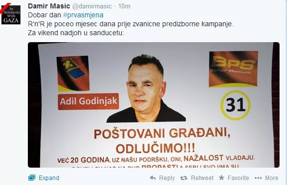 Iako zvanična predizborna kampanja još nije počela, političke stranke uveliko već rade na promociji svojih kandidata, piše bh. novinska agencija Patria. Jedan primjer zabilježio je federalni ministar obrazovanja i nauke Damir Mašić te ga objavio na društvenoj mreži Twitter. Naime, u svom sandučiću proteklog vikenda pronašao je promotivni letak kandidata Adila Godinjaka Bosanskohercegovačke patriotske stranke – Sefer Halilović.