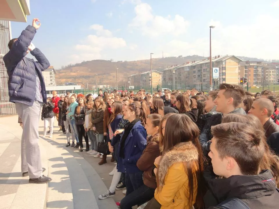 Učenici Gimnazije Dobrinja na čelu sa profesorom geografije Vedranom Zubićem posmatrali su djelimično pomračenje Sunca, dok je profesor objašnjavao ovu pojavu, piše bh. novinska agencija Patria.