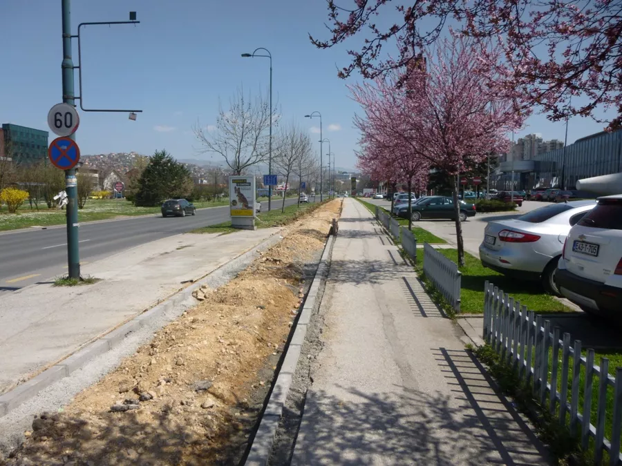 Staza je već pripremljena, i radnici KJKP Rad su započeli s asfaltiranjem staze nakon čega će se postaviti pigmentirani asfalt smeđo-crvene boje, te ofarbati ivičnjaci u bijelo. Potom će se pristupiti postavljanju vertikalne saobraćajne signalizacije. Očekuje se da krajem aprila desna strana bude završena. Započeti su zemljani radovi na lijevoj strani biciklističke staze, i to kod bivšeg Doma penzionera. Ta trasa će ići do mosta Otoka.