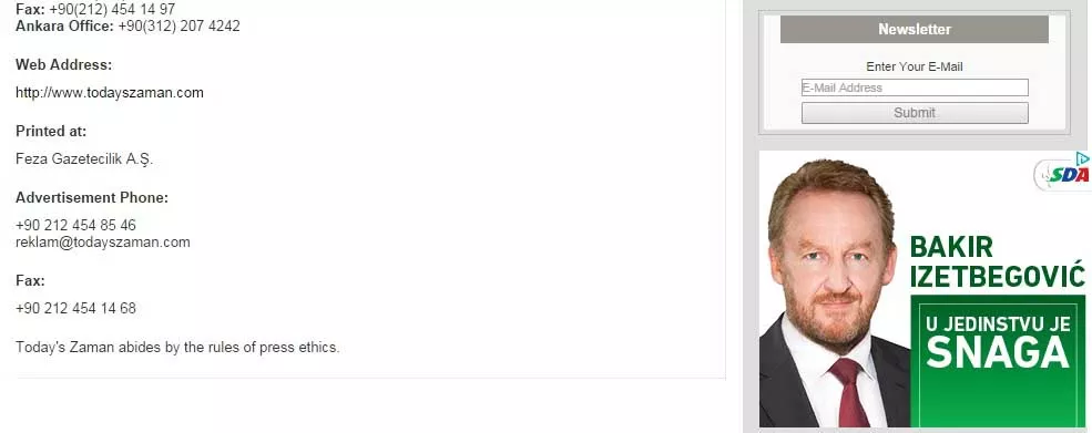 Na turskom portalu todayzaman.com, sa sjedištem u Ankari, nalazi se izborni plakat Bakira Izetbegovića, zamjenika predsjednika SDA, piše bh. novinska agencija Patria.