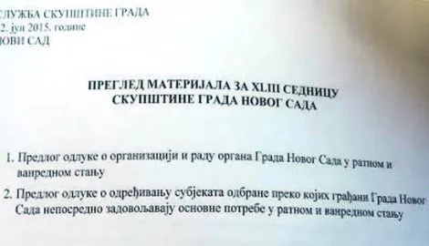 Na vanrednoj i još dodatno tajnoj sjednici Skupštine grada Novog Sada raspravljat će se ni više ni manje nego o ratu. Zašto? Niko ne zna, prenosi novinska agencija Patria.