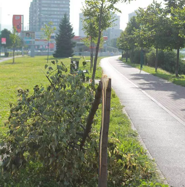 Kako je neodgovornim pojedincima potrebno vrlo malo vremena da unište jedno stablo, time i drvored, odnosno hortikulturno uređenje staze za šetnju i rekreaciju dokaz je slika koju su jutros radnici preduzeća „Park“ zatekli na biciklističkoj stazi uz ulicu Zmaja od Bosne od Čengić Vile prema Otoci, prenosi novinska agencija Patria.