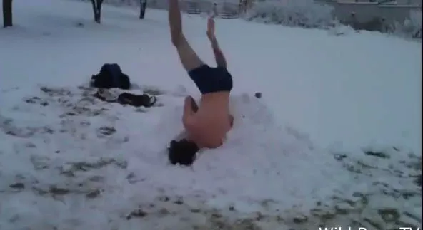 Neimenovani autor snimak je nazvao „uživanje na snijegu“. Ipak, preporučuje se da ovakvo što drugi ne čine, jer sigurno je da ostavlja posljedice po zdravlje.