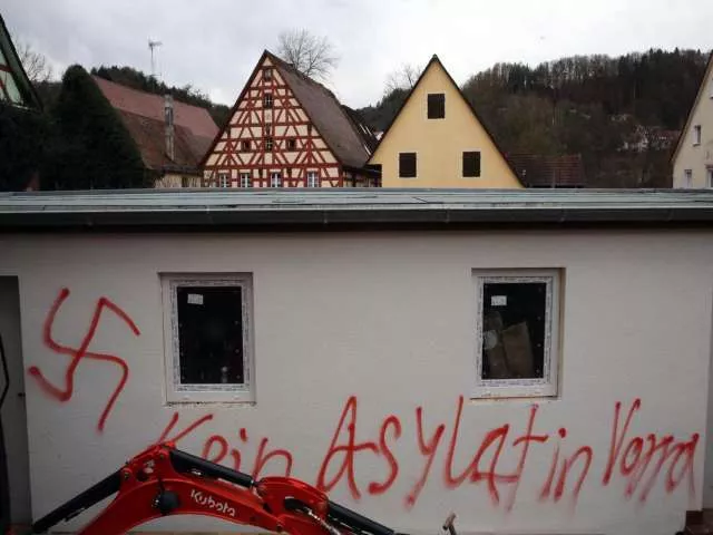 Na kućama su iscrtani simboli „svastika“ kao i poruka azilantima.