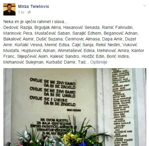 - Neka im je vječni rahmet i slava - napisao je Teletović koji je dobar dio svog života proveo u Tuzli.