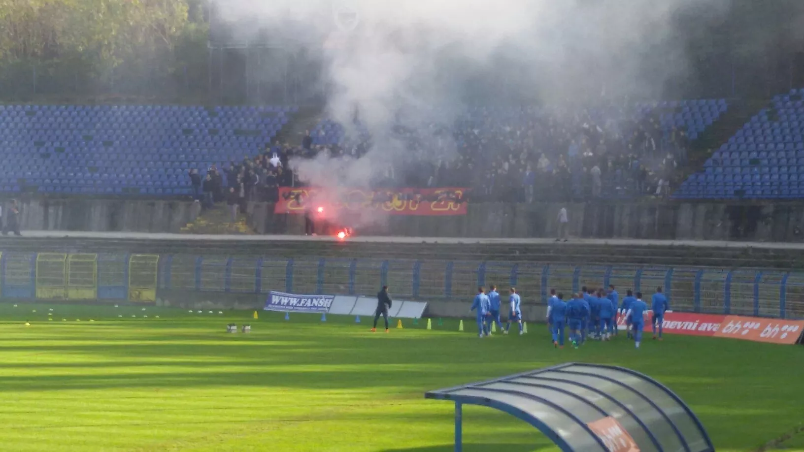 Oko 400 Željinih navijača popularnih "Manijaka" posmatralo je trening, a pripremili su i posebnu "koreografiju". Naime, poznato je da su Plavi i Bordo momci ljuti rivali, a danas je na Grbavici uništen transparent rivala na kojem je pisalo "HZ I love FCS KZ" - Horde zla Volim FK Sarajevo Kraljice zla.