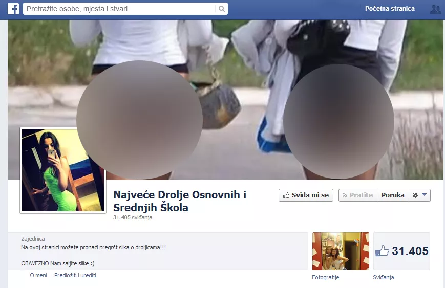 Uvredljiva i pedofilska Facebook gupa „Najveće drolje osnovnih i srednjih škola“ prikupila je više od 30.000 korisnika, za nešto više od 48 sati, priše bh. novinska agencija Patria. Administratori ove grupe objavljuju eksplicitne fotografije i imena i prezimena maloljetnih djevojčica iz zemalja regiona, uglavnom BiH, Srbije i Hrvatske. Ovo nije prvi put da se takve grupe uspostavljaju, nakon čega ih adminstratori društvene mreže gase, no one se ponovo pojavljuju, jer očito imaju veliki broj fanova.