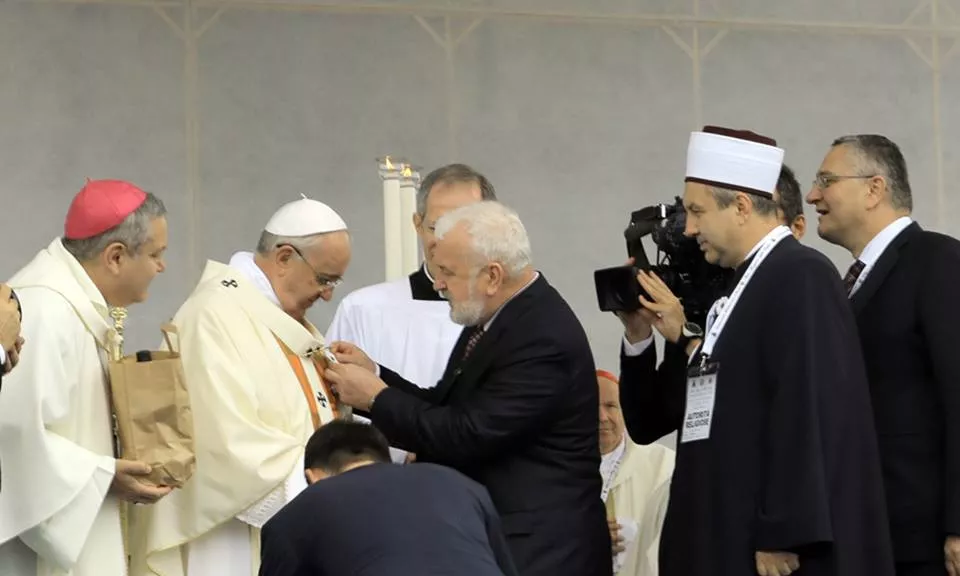Po održanoj molitvi, dr. Cerić je održao kratak razgovor sa papom Franjom, te mu uručio „Srebrenički cvijet“, simbol jednog od najvećih stradanja Bošnjaka, genocida u Srebrenici.