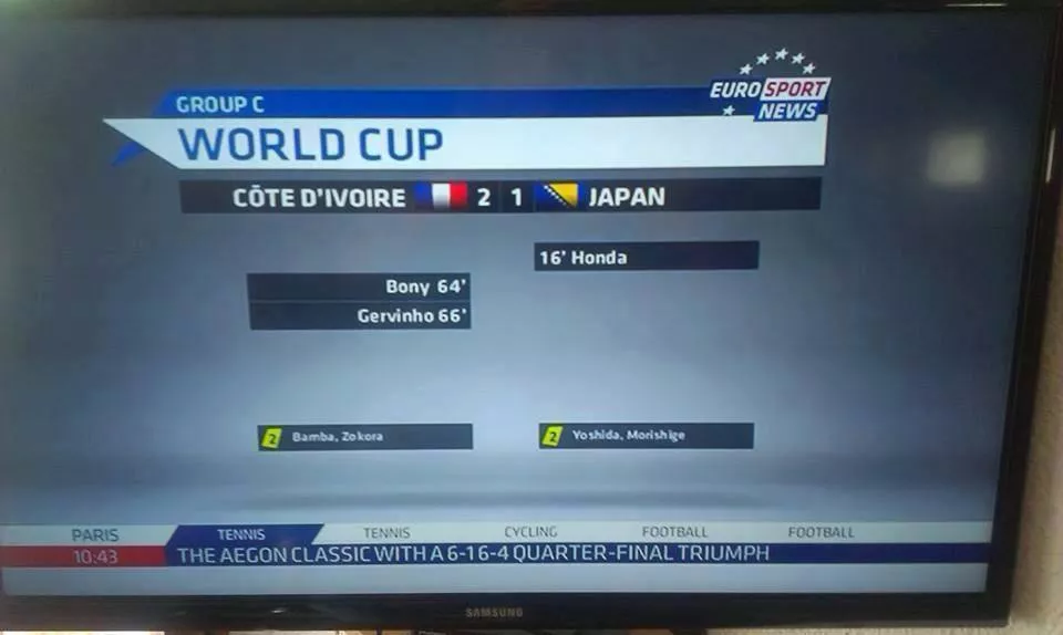 Najveća nogometna smotra na svijetu ne može proći bez sitnijih ili krupnijih grešaka organizatora, ili novinara, piše novinska agencija Patria. Tako je Eurosport u odjavi utakmice Obala Slonovače-Japan umjesto zastave Japana stavili su zastavu BiH.