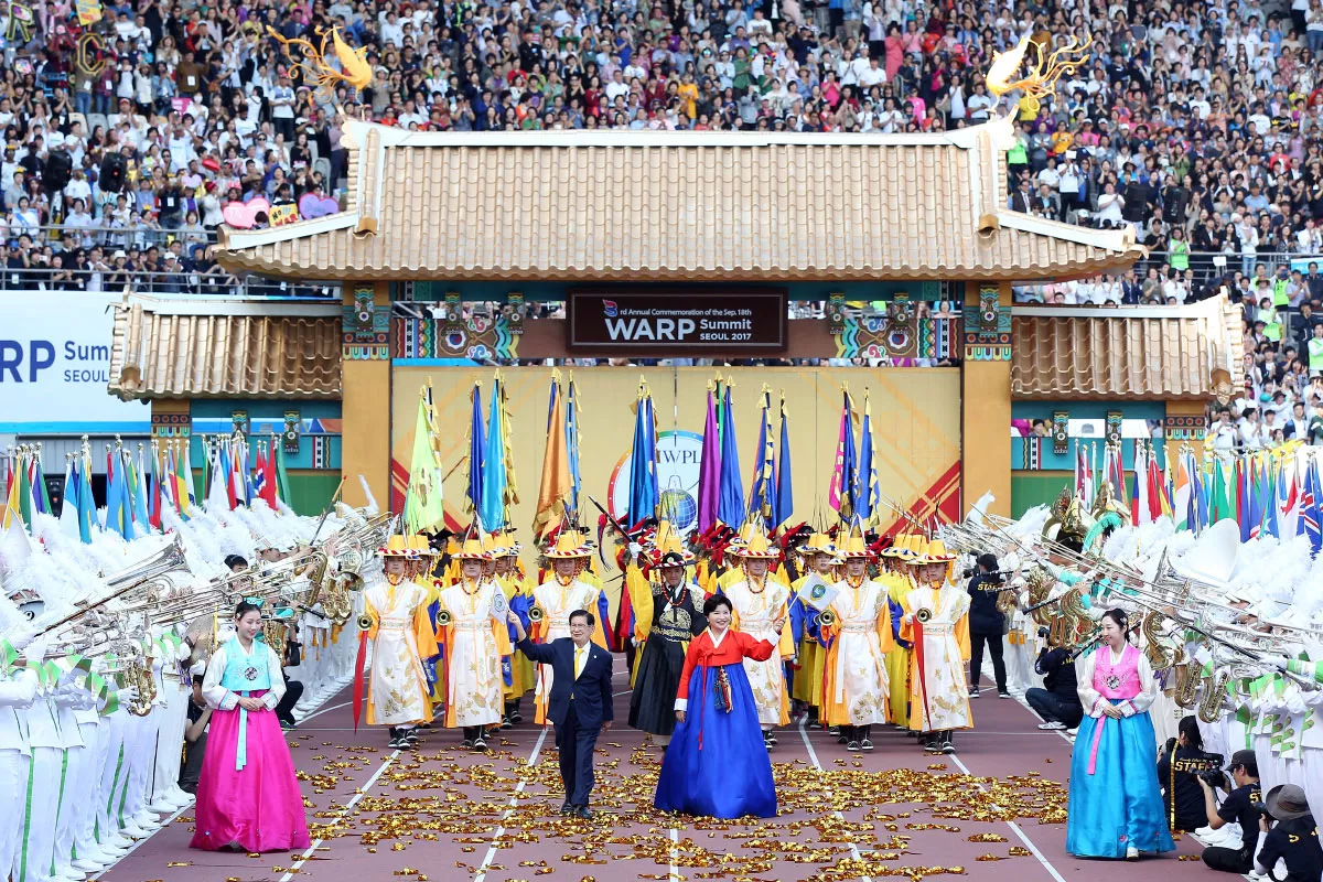 The Gate of the Peace, the representative symbol of the WARP Summit, had finally opened and leading figures from around the globe entered alongside children, who are the future proponents of peace, transcending differences in national borders, religions, and ideologies. The breathtaking entrance appeared to represent the beginning of the new era of no war, which is the ultimate dream of humanity.