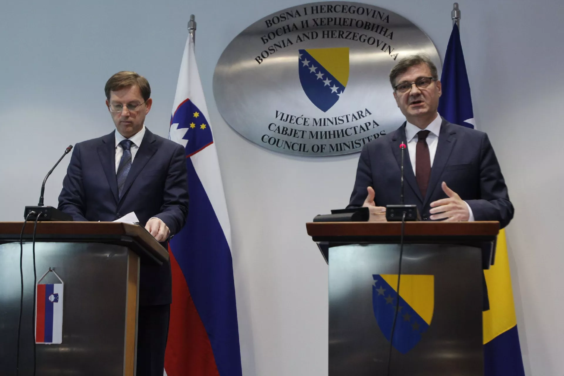 On je dodao da je ekonomska saradnja sa BiH za Sloveniju posebno važna i BiH se nalazi na trećem mjestu po ukupnoj vrijednosti slovenačkih investicija i slovenačka preduzeća zapošljavaju oko 15.000 radnika iz BiH.