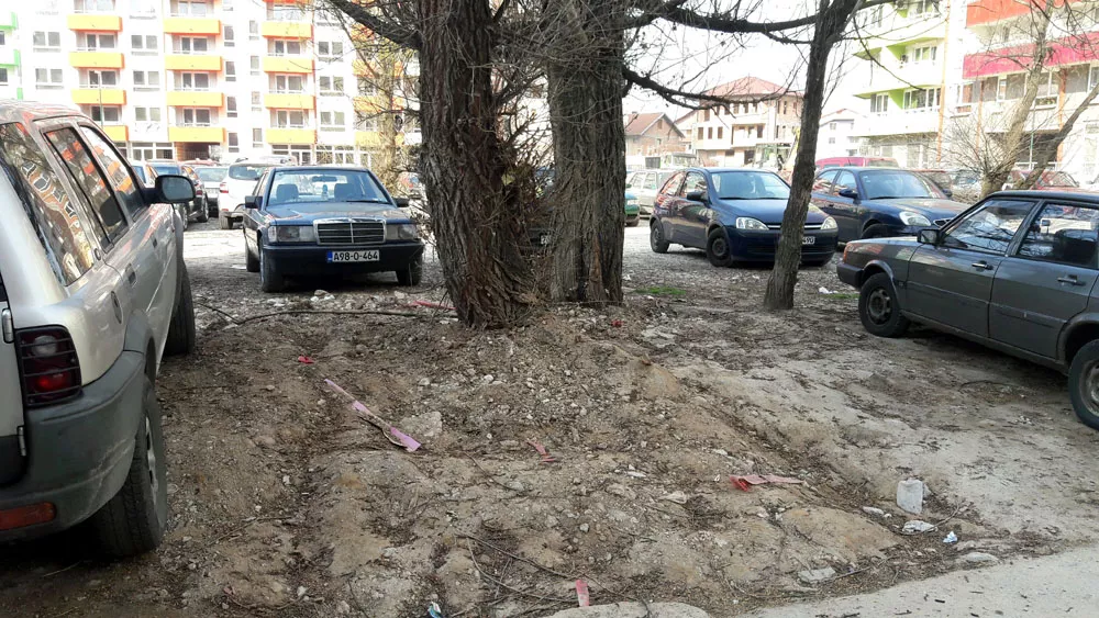 Parking koji je izgrađen 2013. godine kao privremeno rješenje jer je plan bio da se pravi etažna garaža nema čuvara, osvjetljenja, iscrtanih mjesta, a pun je drveća i zemlje između kojih vlasnici ostavljaju automobile.