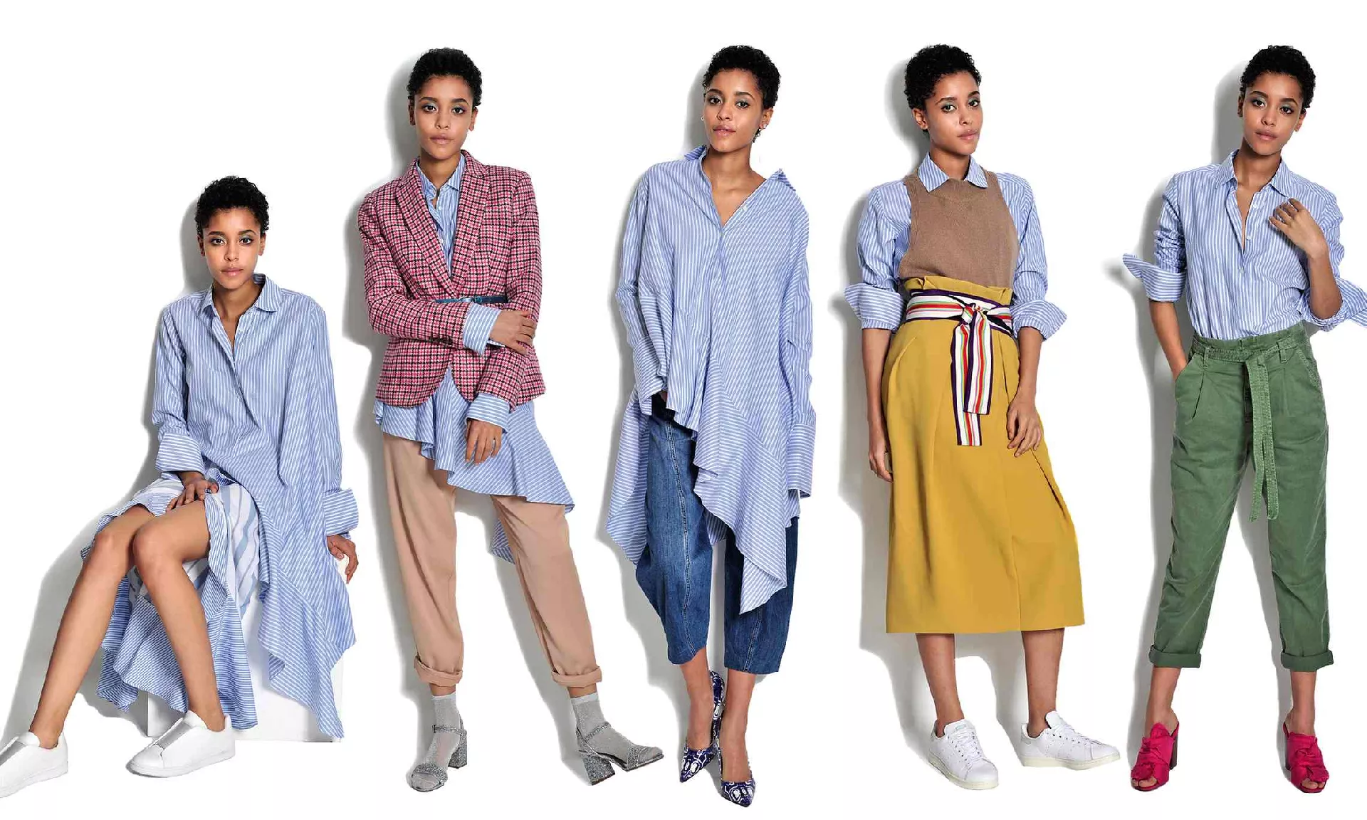 Plava košulja poslovnog stila doživjet će renesansu. Ponekad monotoni klasični izgled doživjeće transformaciju u haljinu, „golo rame“ sa neuobičajenim novim proporcijama kao što su predugi rukavi.