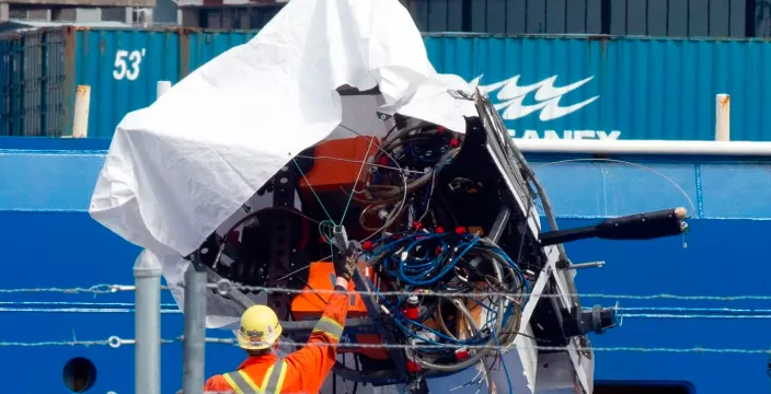 (Patria) - Ostaci podmornice Titan izvučeni su na obalu nakon što je implodirala prije gotovo dvije sedmice