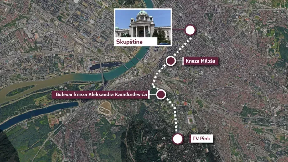 U Beogradu je zakazano okupljanje demonstranata u 18 sati ispred Narodne skupštine, kao i do sada, ali će ruta šetnje, kao i kraj kolone biti nešto drugačiji. Naime, nakon govora ispred parlamenta građani će krenuti Ulicom kneza Miloša do Mostara, a odatle Bulevarom kneza Aleksandra Karađorđevića do zgrade televizije Pink.