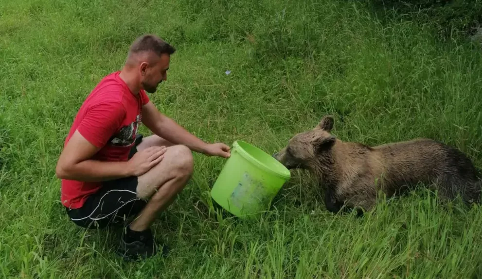 Mještani su priskočili u pomoć medvjedici, pružili joj vodu i odmah obavijestili nadležne službe.