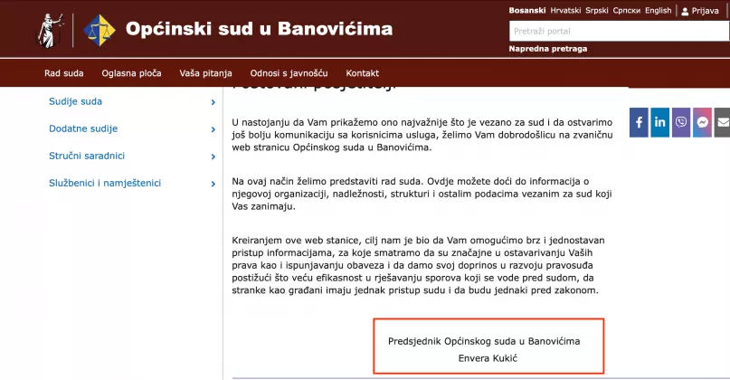 Predsjednica Općinskog suda u Banovićima koji je izdao naredbu u ovom slučaju je Envera Kukić, inače supruga osnivača PDA Mirsada Kukića čije se ime nalazi na američkoj crnoj listi.