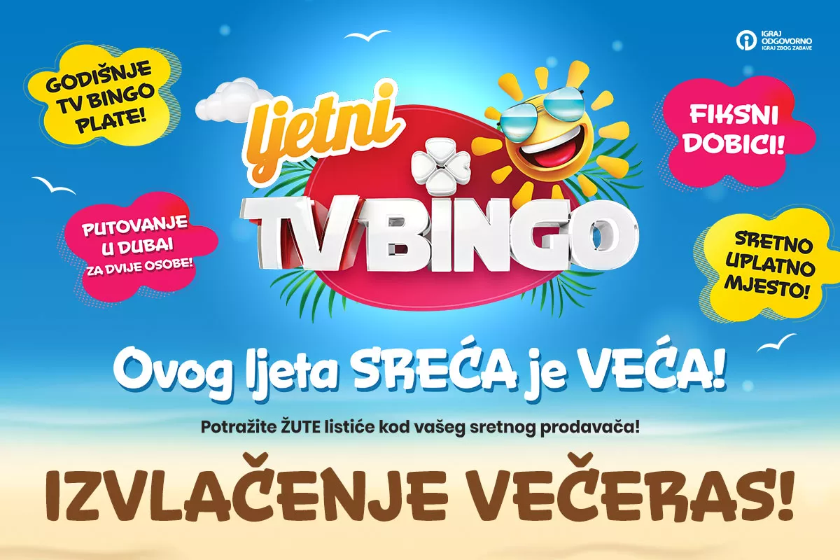 (Patria) - Lutrija BiH je pripremila ovogodišnje treće po redu vanredno kolo igre na sreću TV Bingo, koje će se realizovati večeras u 20:10 sati na Federalnoj televiziji.