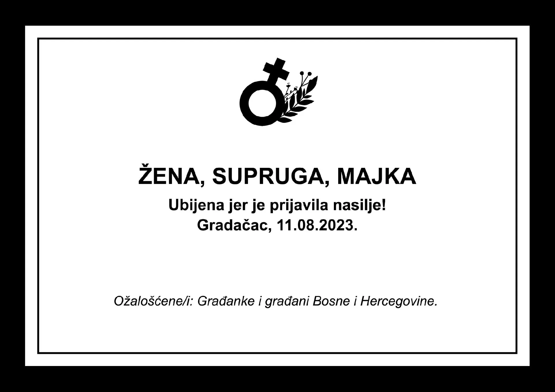 (Patria) - Povodom femicida i dva ubistva koja su se desila u Gradačcu, Odbor za praćenje provedbe i izvještavanje po Istanbulskoj konvenciji i femicidu u Bosni i Hercegovini upućuje izraze najiskrenijeg saučešća porodicama ubijenih.