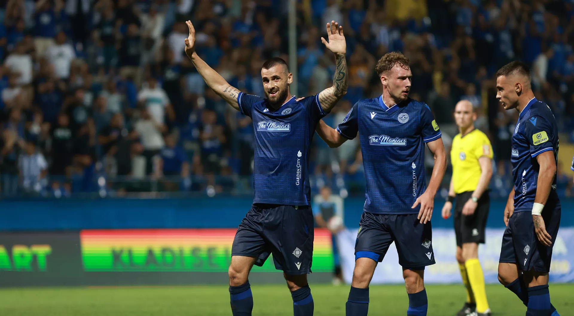 Plavi su poveli već u trećoj minuti, na sasvim neočekivan način. Jašarević je ubacio, a defanzivac gostiju Nenad Nikić sproveo loptu u vlastitu mrežu.
