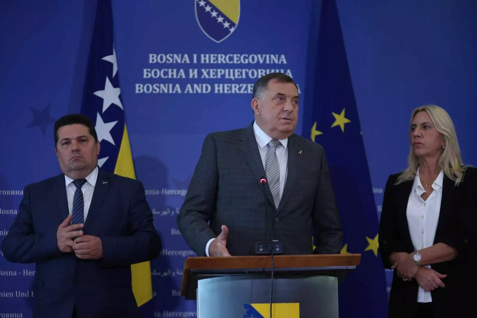"Održali smo dogovor za neke stvari. Popunjena je radna grupa za izradu Izbornog zakona. Na partnerima iz Federacije ostaje i dalje obaveza da rješavaju pitanje načina izbora članova Predsjedništva u FBiH. RS ostaje i dalje pri tome da bira neposredno jednog iz RS-a. Prihvatamo svaki dogovor po tom pitanju kako se dogovore partneri u Federaciji. Žao mi je što nismo uspjeli usaglasiti ova dva zakona. To je bio paket. Pošto nismo to uspjeli da uradimo, nemamo taj paket usaglašen", naveo je dodajući da su htjeli napraviti očekivani korak uoči dolaska predstavnika Evropske unije.
