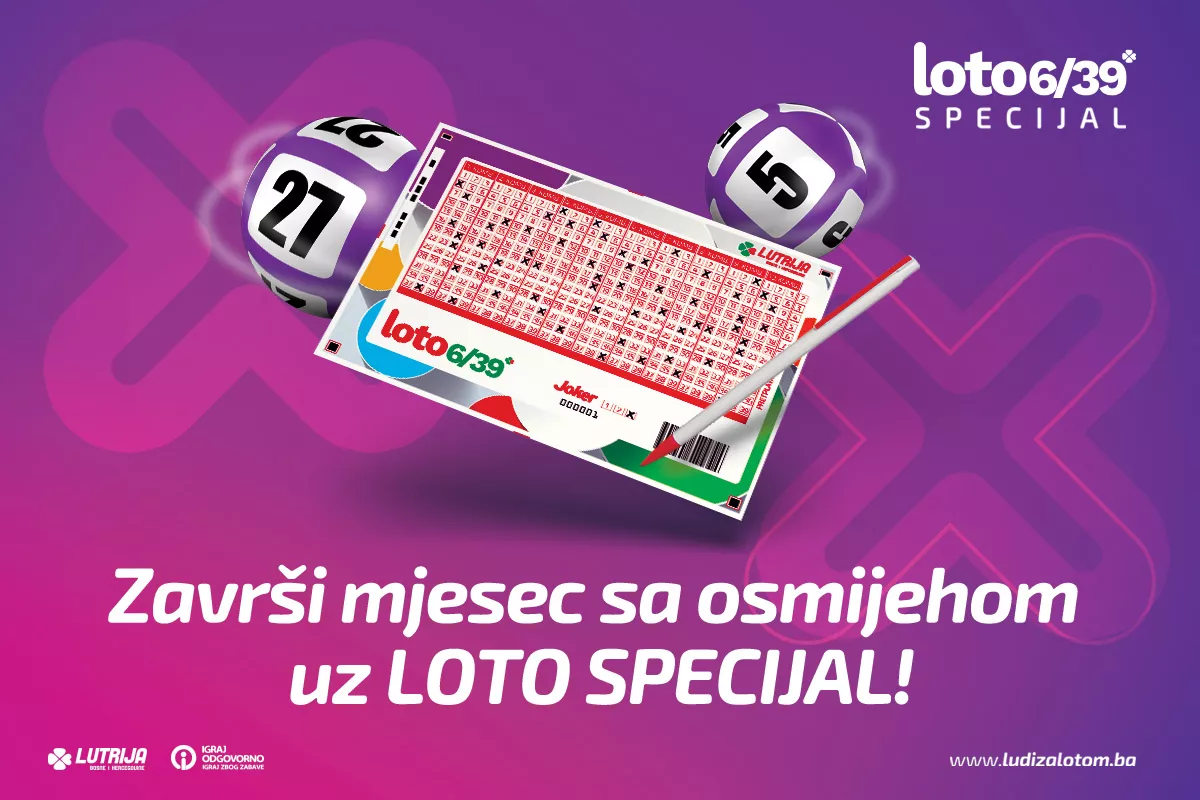 (Patria) - Svaki ljubitelj igara na sreću zna da je svaka igra prilika za osvajanje nekog novčanog dobitka. Lutrija Bosne i Hercegovine od sada nudi nešto posebno, a to je LOTO 6/39 Specijal koji će se realizovati svakog posljednjeg kola u mjesecu. U LOTO Specijalu igrači imaju razlog više da učestvuju u potrazi za srećom jer kompletan fond dobitaka posljednjeg kola u mjesecu igre LOTO 6/39 se dijeli svim sretnim dobitnicima, bez obzira da li je u tom kolu izvučen glavni dobitak - JACKPOT.