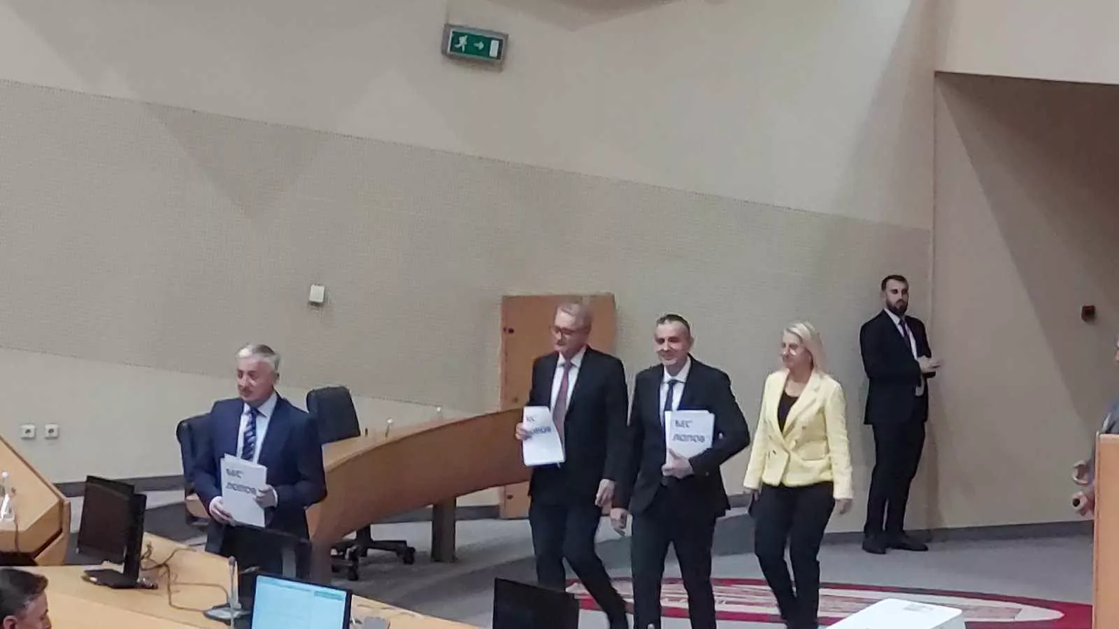 Oni su te papire stavili na svoja mjesta, ali predsjedavajući Predstavničkog doma PS BiH Marinko Čavara tražio je da se "transparenti" uklone.