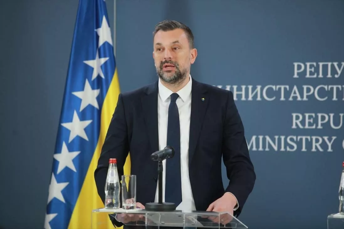 (Patria) - Ministar vanjskih poslova BiH Elmedin Konaković održao je večeras konferenciju za novinare povodom učešća na Ministarskoj konferenciji u Berlinu, posjete predsjednice Evropske komisije Ursule von der Leyen i mjerama i aktivnostima koje MVP BiH poduzima u vezi s evakuacijom bh. državljana iz Gaze.