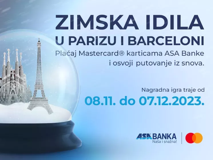Nagradna igra traje do 07.12.2023. godine, pružajući svim klijentima ASA Banke priliku da osvoje putovanje u Pariz za 4 osobe ili putovanje u Barcelonu za 2 osobe.