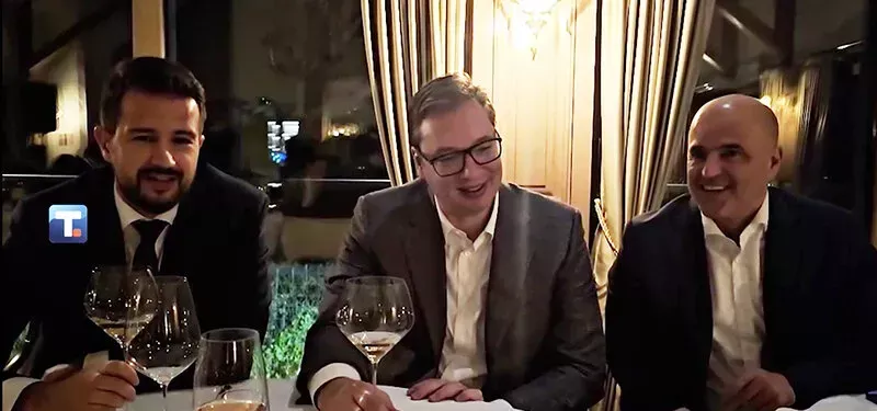 Uz vino i stihove "Dajte vina hoću lom", Milatović je nastavio druženje sa Open Balkan ekipom, koju je, osim njega i Vučića, činio i makedonski premijer Dimitar Kovačevski.