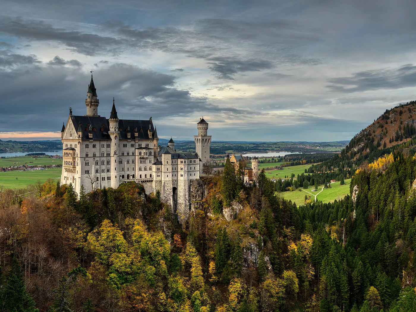 Dvorac Neuschwanstein iz 19. stoljeća smjestio se na brdu nedaleko od očaravajućeg grada Fussena u Bavarskoj.