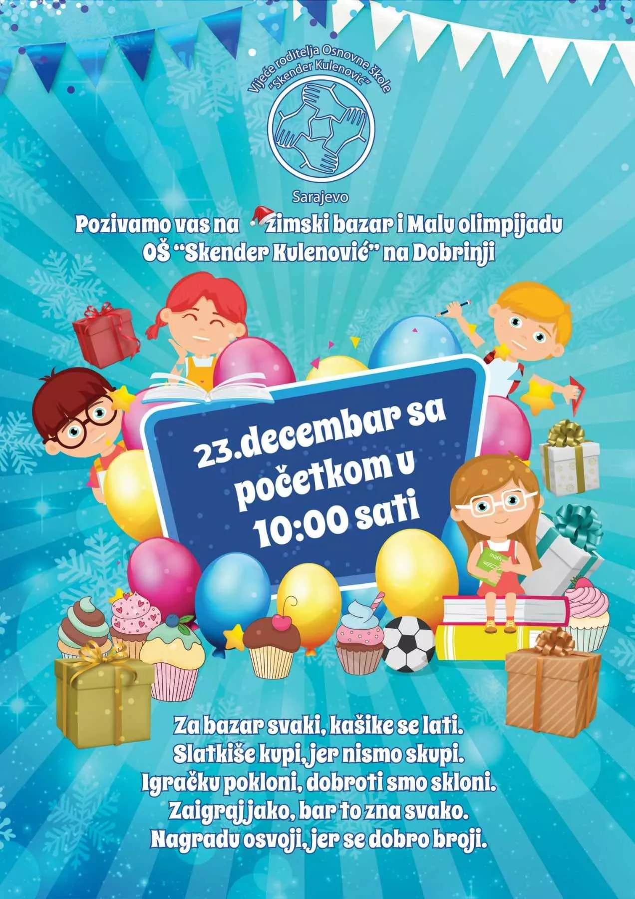 (Patria) - U Osnovnoj školi "Skender Kulenović" na Dobrinji u subotu 23. decembra bit će održan 15. Zimski bazar s početkom u 10 sati.