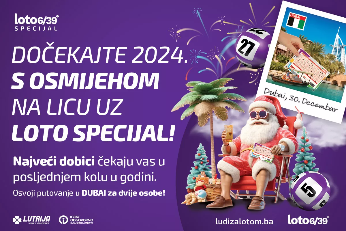 (Patria) - Lutrija Bosne i Hercegovine nastavlja donositi uzbuđenje i radost svojim igračima širom zemlje, a posebno kada je u pitanju izdanje - LOTO Specijal. Ovo posebno izdanje obećava ne samo podjelu kompletnog fonda dobitaka tog kola, već i priliku za jedinstveno putovanje u luksuzni Dubai.