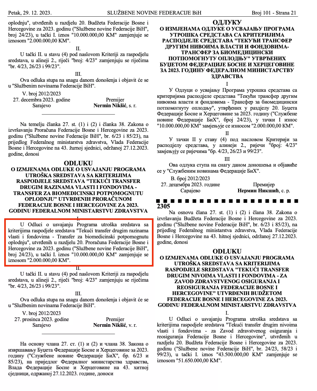 Ukratko, da sredstva ne bi bila utrošena, sedam dana ranije pobrinuo se federalni ministar zdravlja Nediljko Rimac. On je, naime, 20. decembra izmijenio Pravilnik prema kojem povrat sredstava za liječenje od neplodnosti mogu izvršiti samo oni parovi koji su proces započeli prije 16. juna 2023. godine.
