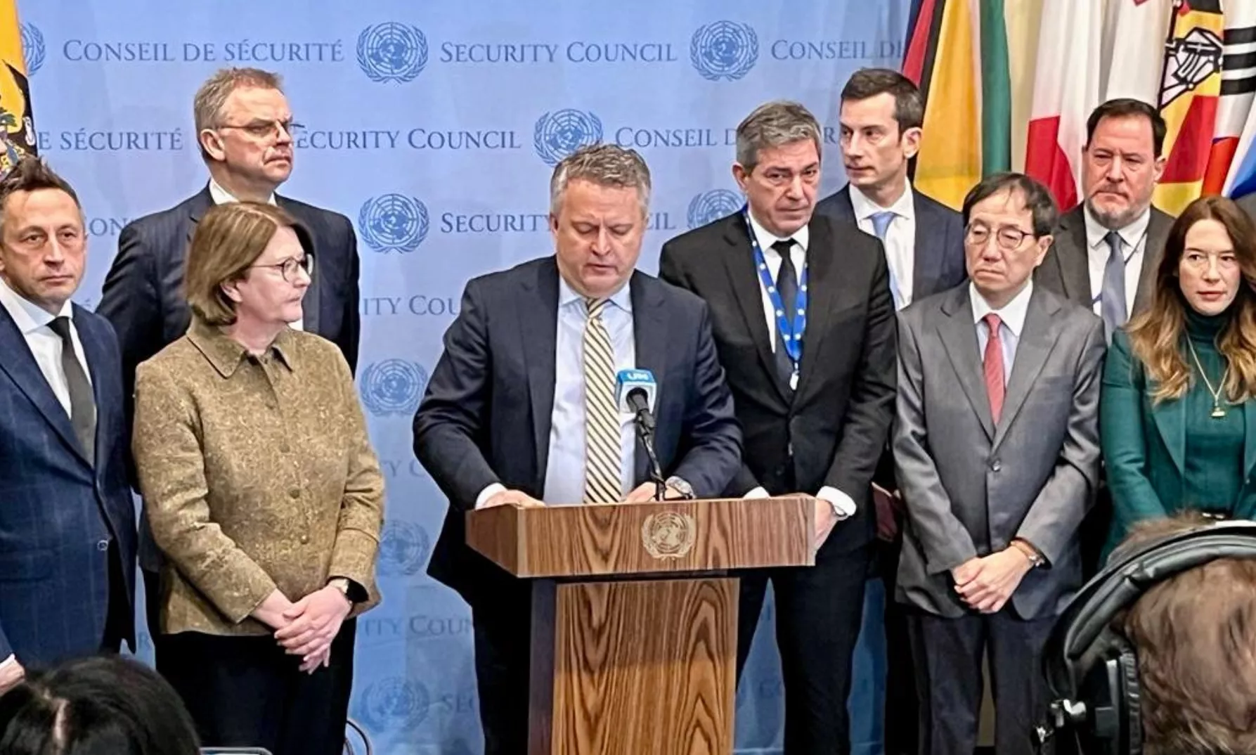 Joint Press Stakeout by the Permanent Representative of 🇺🇦 to @UN @SergiyKyslytsya on behalf of the governments of 🇦🇱,🇦🇺,🇦🇹,🇧🇪,🇧🇦,🇧🇬,🇨🇦,🇭🇷,🇨🇾,🇨🇿,🇩🇰,🇪🇪,🇫🇮,🇫🇷,🇩🇪,🇬🇷,🇭🇺,🇮🇸,🇮🇪,🇮🇱,🇮🇹,🇯🇵,🇱🇻,🇱🇮,🇱🇹,🇱🇺,🇲🇹,🇲🇭,🇲🇨,🇲🇪,🇳🇱,🇳🇿,🇲🇰,🇳🇴,🇵🇱,🇵🇹,🇲🇩,🇰🇷,🇷🇴,🇸🇲,🇸🇰,🇸🇮,🇪🇸,🇸🇪,🇺🇦,🇬🇧,🇺🇸&🇪🇺(22 January 2024) pic.twitter.com/gvl6XjzHp2
