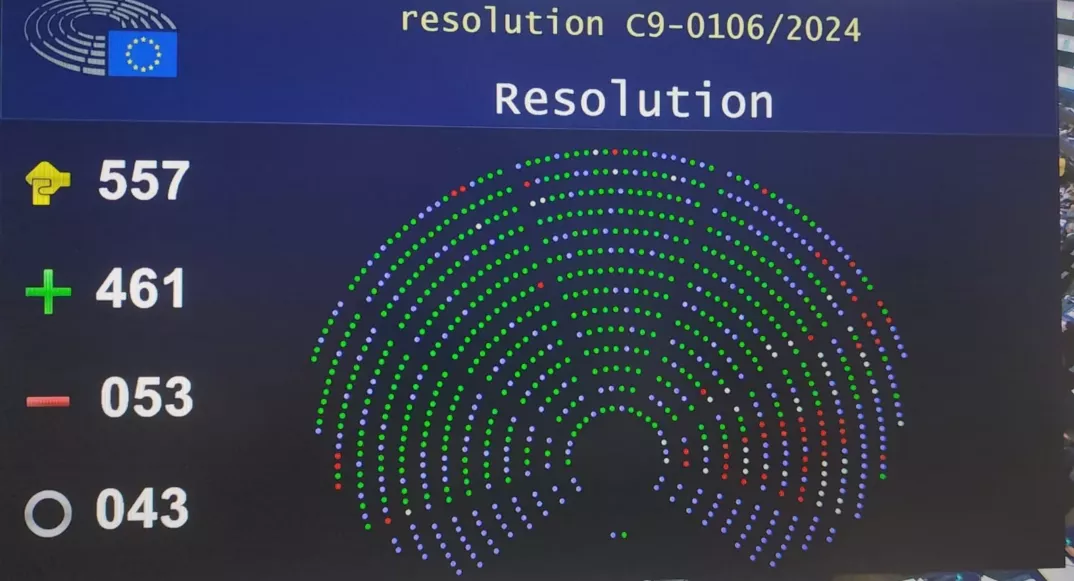 Za rezoluciju Evropskog parlamenta o situaciji u Srbiji nakon održanih izbora glasao je 461 poslanik, protiv ih je bilo 53, a suzdržanih 43, prenosi RSE.