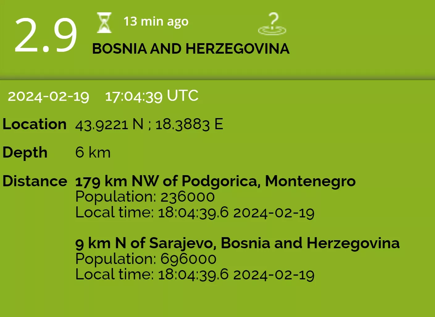 #Earthquake (#zemljotres) possibly felt 16 sec ago in #Bosnia&Herzegovina. Felt it? Tell us via: