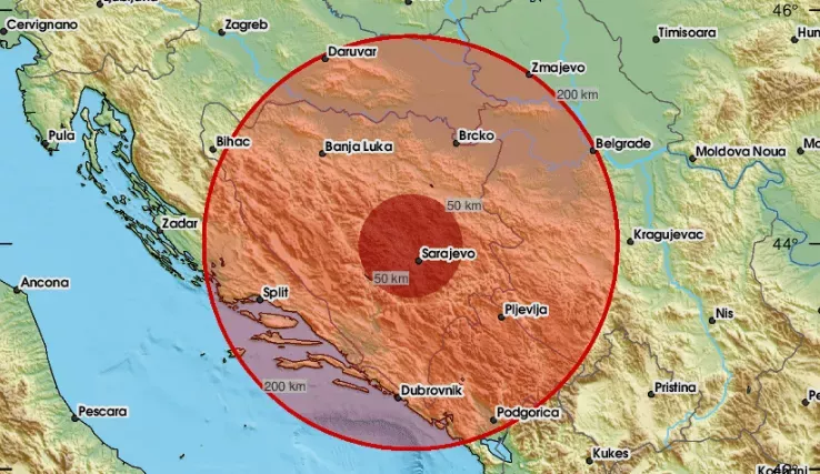 Epicentar večerašnjeg podrhtavanja tla, koje se prema informacijama Evropskog mediteranskog seizmološkog centra (EMSC) dogodilo u 18.04 sati, zabilježen je devet kilometara sjeverno od Sarajeva, i to na dubini od šest kilometara.