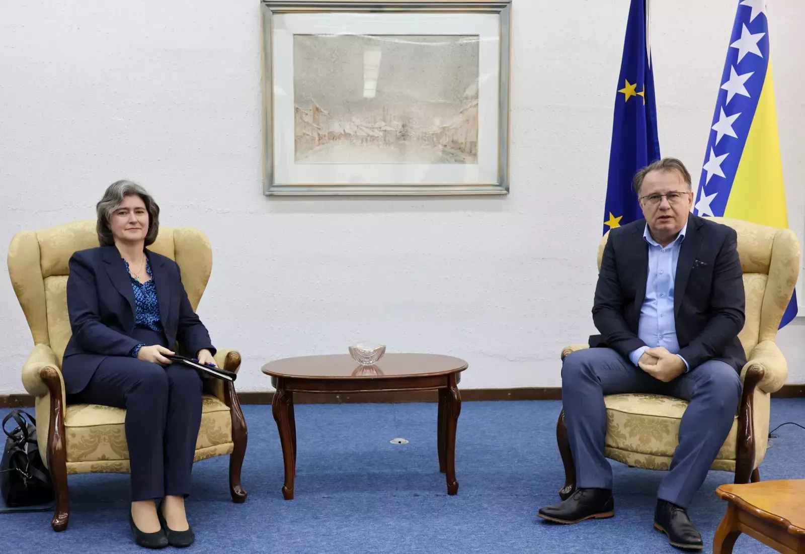 (Patria) - Premijer Federacije Bosne i Hercegovine Nermin Nikšić sastao se danas u sjedištu Vlade Federacije BiH u Sarajevu sa zamjenicom šefa misije u Ambasadi Sjedinjenih Američkih Država u našoj zemlji Deborah Mennuti.