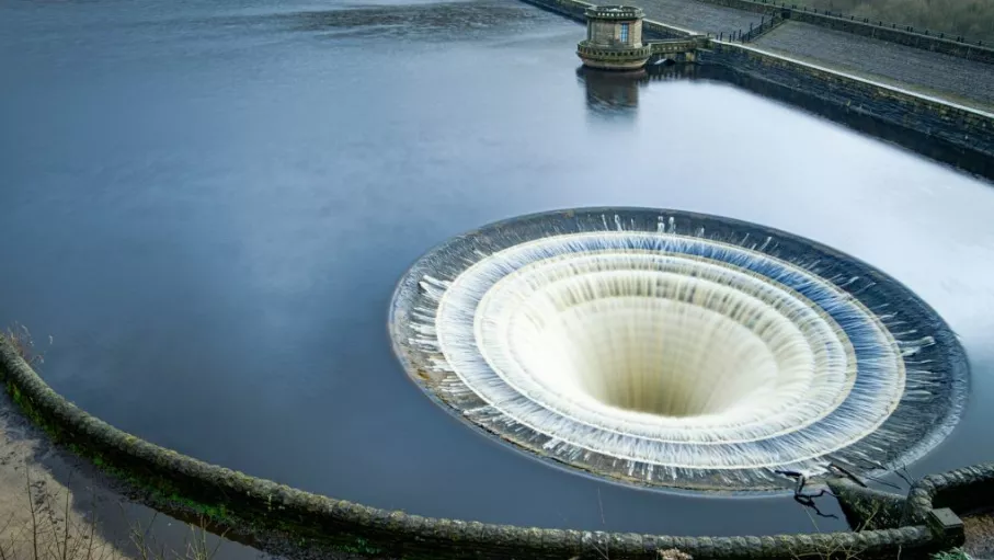 Jezero Ladybower ima čak dva odvoda u obliku lijevka, koji stvaraju vrlo impresivan prizor na površini, zbog kojeg turisti i hrle na njegove obale, piše Punkufer.