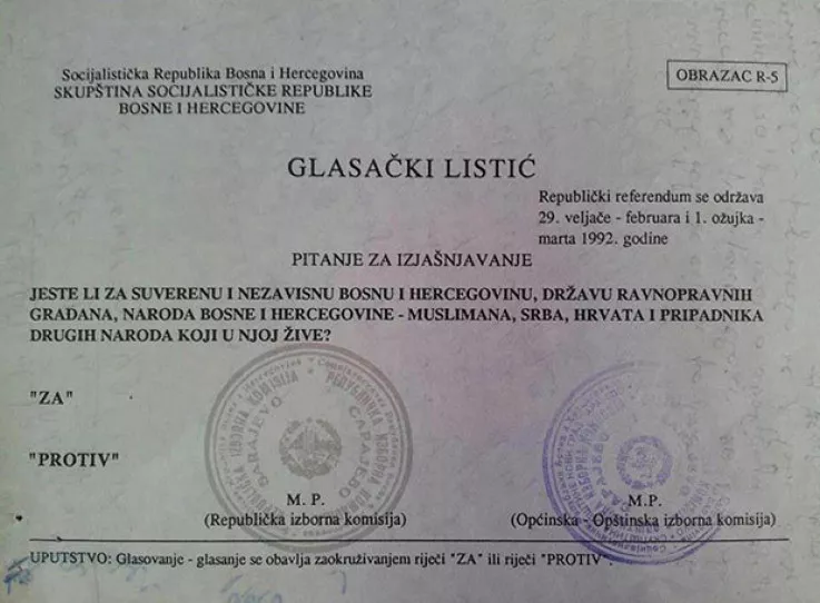 "Jeste li za suverenu i nezavisnu Bosnu i Hercegovinu, državu ravnopravnih građana, naroda BiH - Muslimana, Srba, Hrvata i pripadnika drugih naroda koji u njoj žive?"